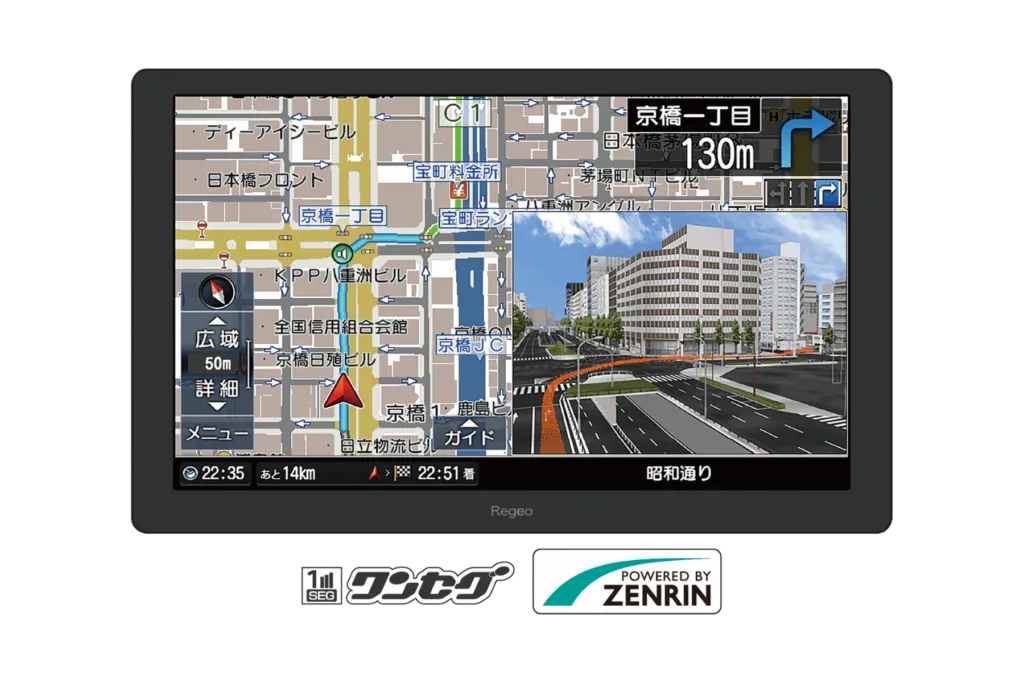 通常版と比べ、建物の形状や道路幅をより分かりやすく表示できるので、安心したドライブを楽しめます。